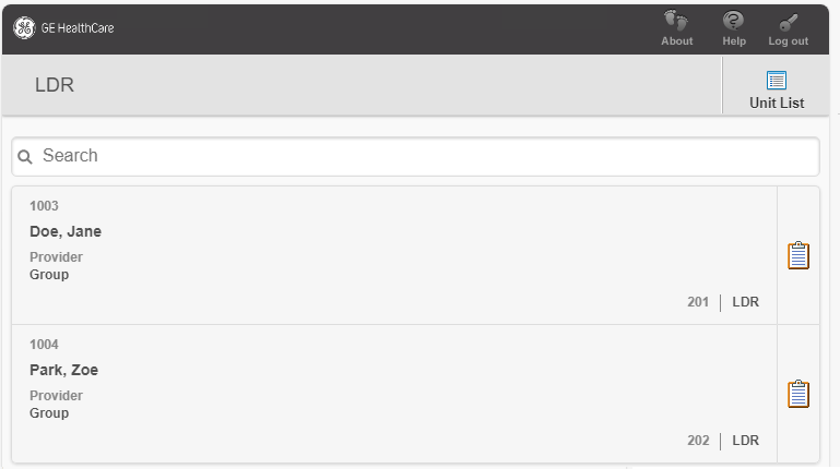 Centricity Perinatal Web will remember your selected unit for your device. When you return to the Patient Directory from the Patient Details view, the patient list will be refreshed. If you do not have privileges to the last unit selected on that device you will be prompted to select a unit.